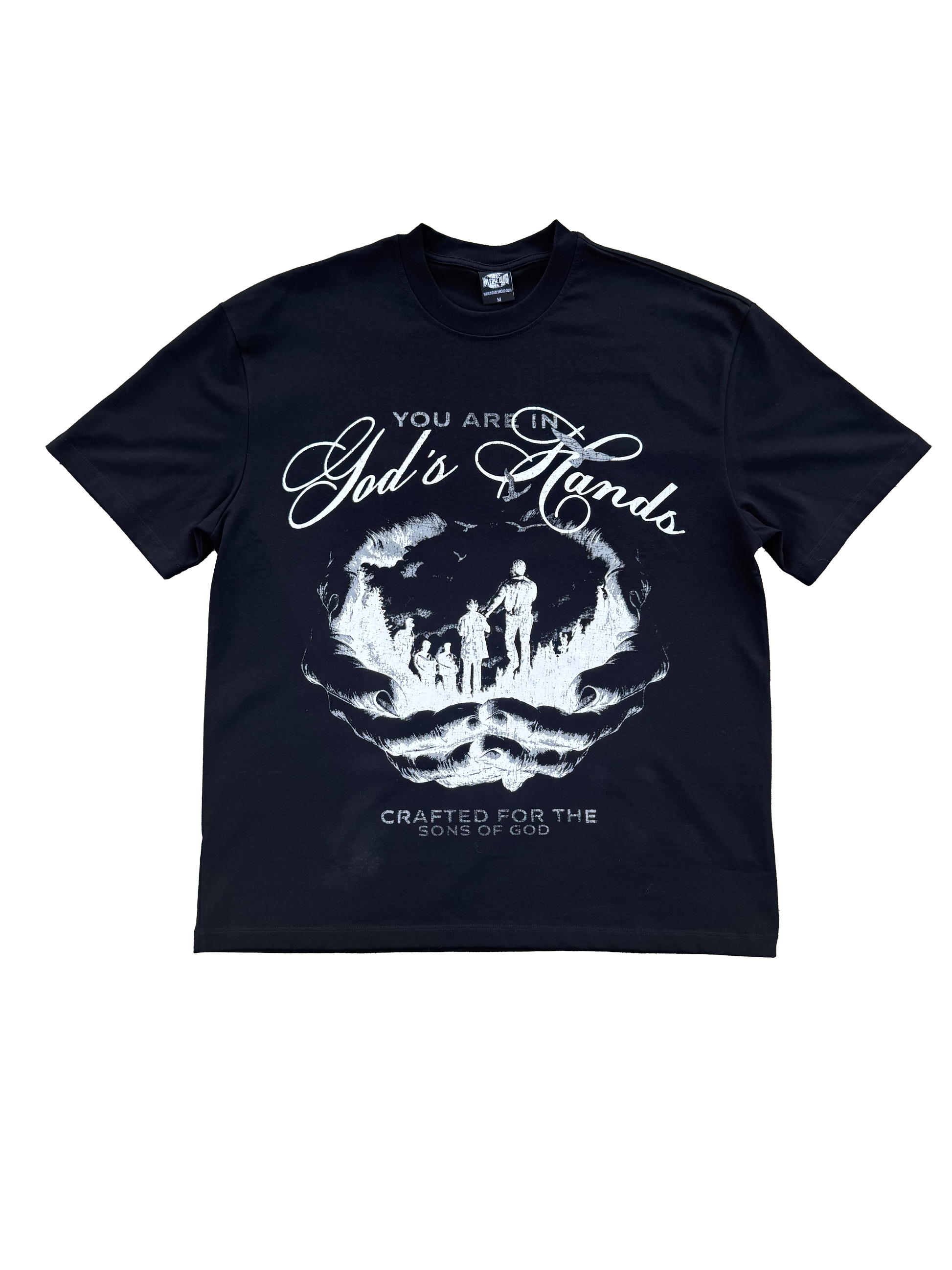 Black "You are in God's Hands" Boxy Tee (Heavyweight & Oversized)